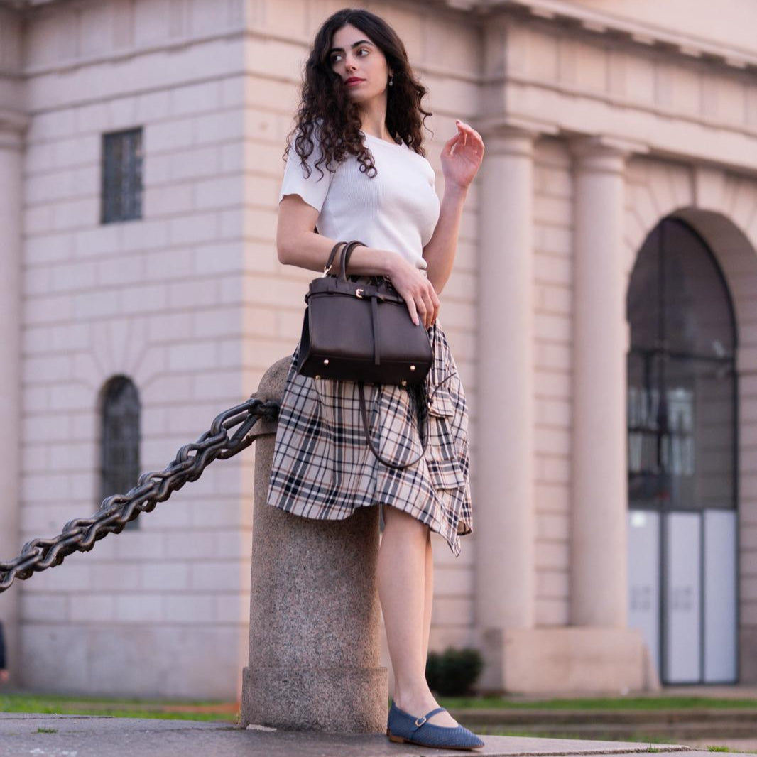 The Brera Medium Bag in Chocolate is a timeless and sophisticated handbag crafted in Italy from premium calf leather. Its structured silhouette and rich brown hue make it an elegant yet versatile piece, perfect for both casual and formal looks. You can style it with a chic denim skirt and boots for a modern daytime outfit or pair it with tailored pieces for an elevated evening ensemble.
