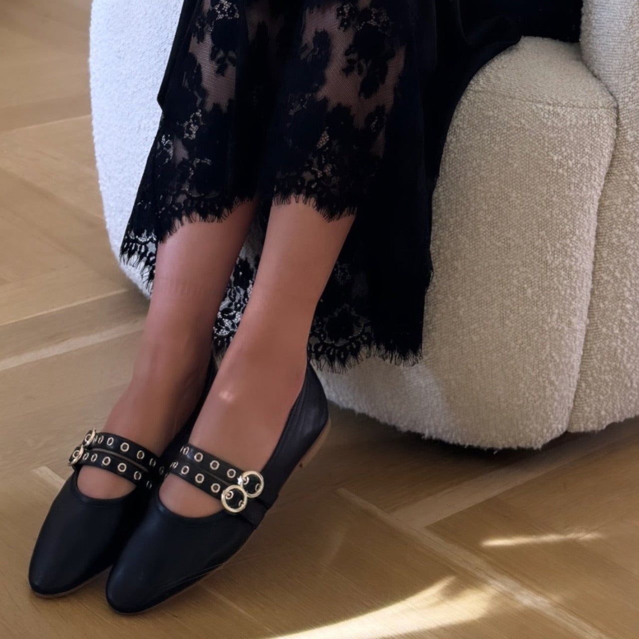 Como, our classic ballerina flat, has a longer toe box and a slim shape that elongates the legs to perfection. The low-stacked heel is comfortable for everyday wear, and a double buckle is the perfect addition for a stylish classic look.