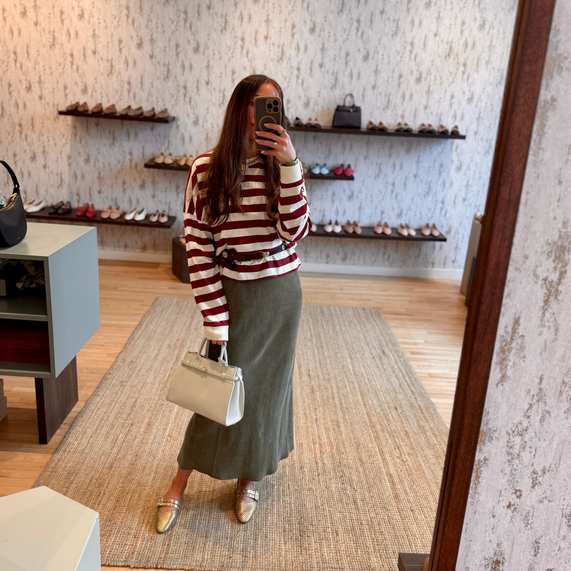 The Como, our new ballerina flat, has a longer toe box and a slim shape that elongate the legs to perfection. The low stacked heel is comfortable for everyday wear, and a cotton bow adds a pretty, feminine touch.