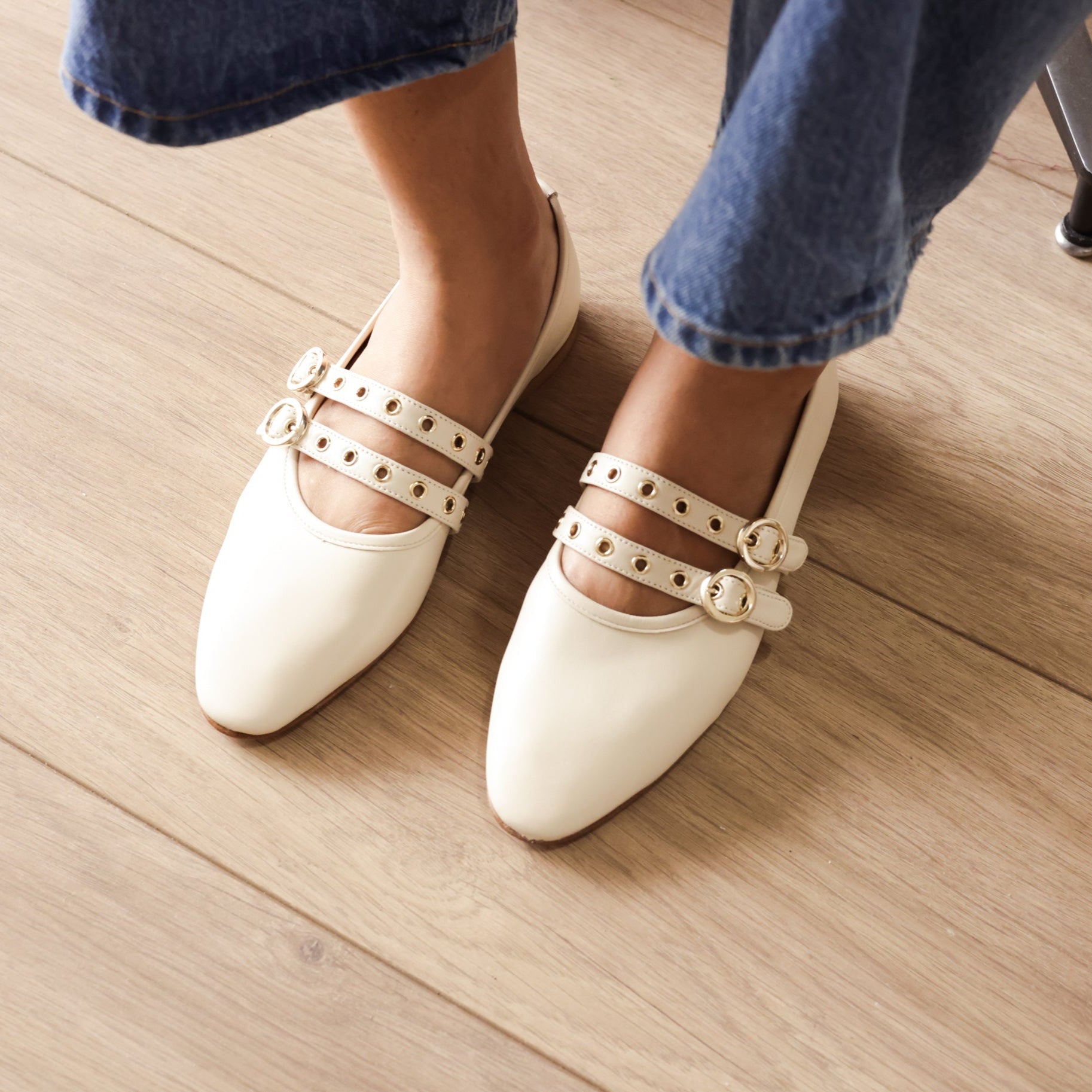 Como, our classic ballerina flat, has a longer toe box and a slim shape that elongates the legs to perfection. The low-stacked heel is comfortable for everyday wear, and a double buckle is the perfect addition for a stylish classic look.