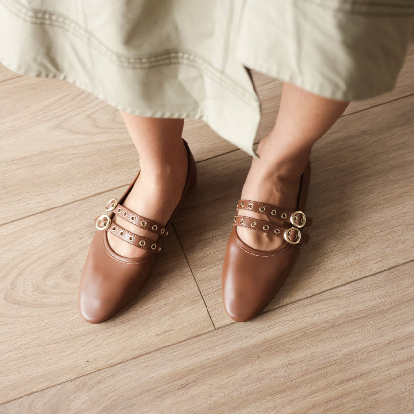 Como, our classic ballerina flat, has a longer toe box and a slim shape that elongates the legs to perfection. The low-stacked heel is comfortable for everyday wear, and a double buckle is the perfect addition for a stylish classic look.