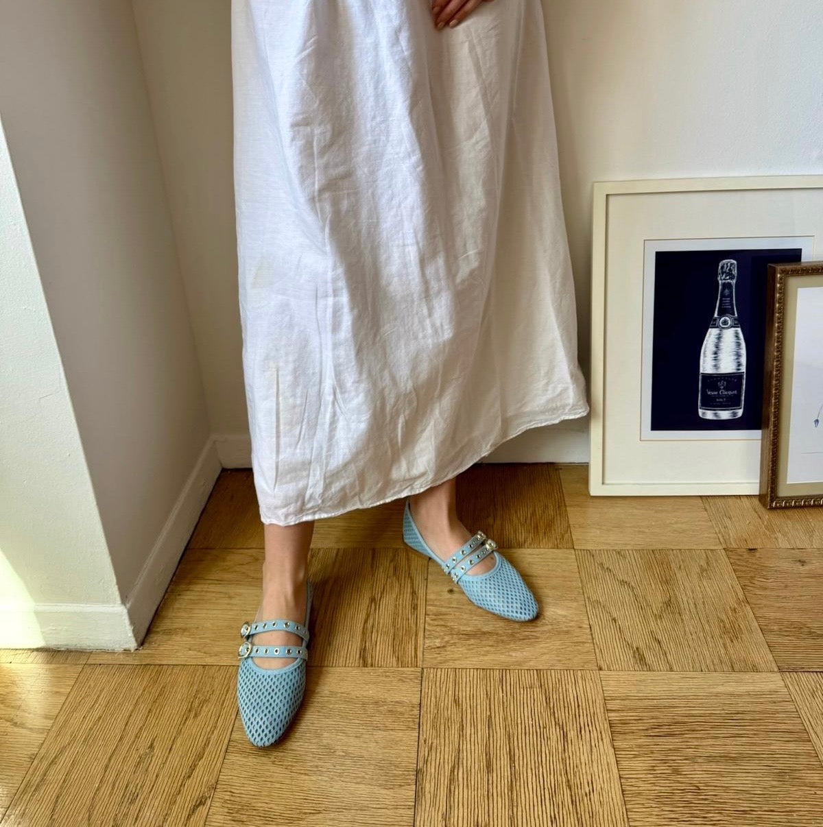The Como, our new ballerina flat, has a longer toe box and a slim shape that elongate the legs to perfection. The low stacked heel is comfortable for everyday wear, and a cotton bow adds a pretty, feminine touch.