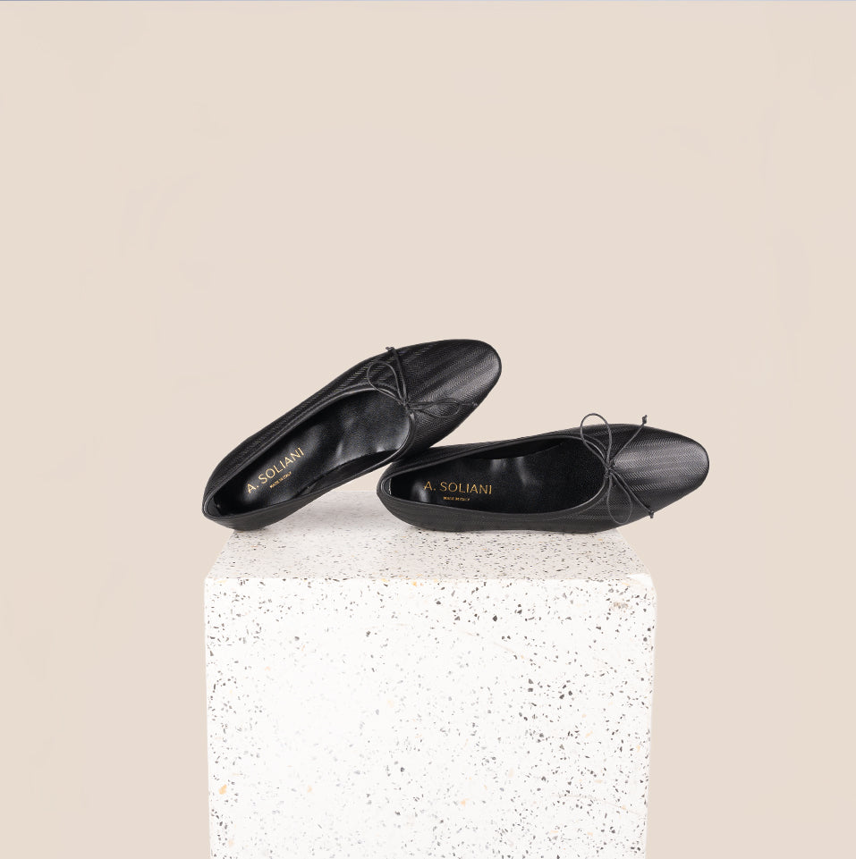 The Como, our classic ballerina flat, has a longer toe box and a slim shape that elongate the legs to perfection. The low stacked heel is comfortable for everyday wear, and a cotton bow adds a pretty, feminine touch.