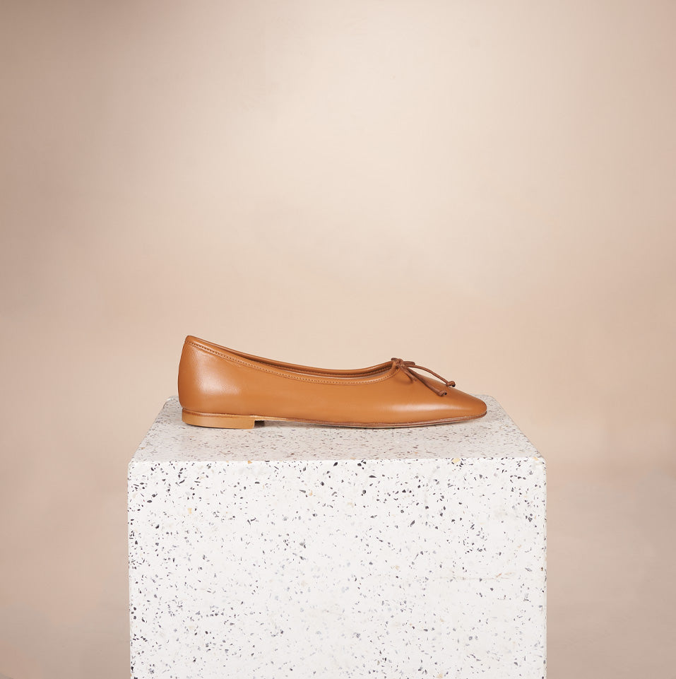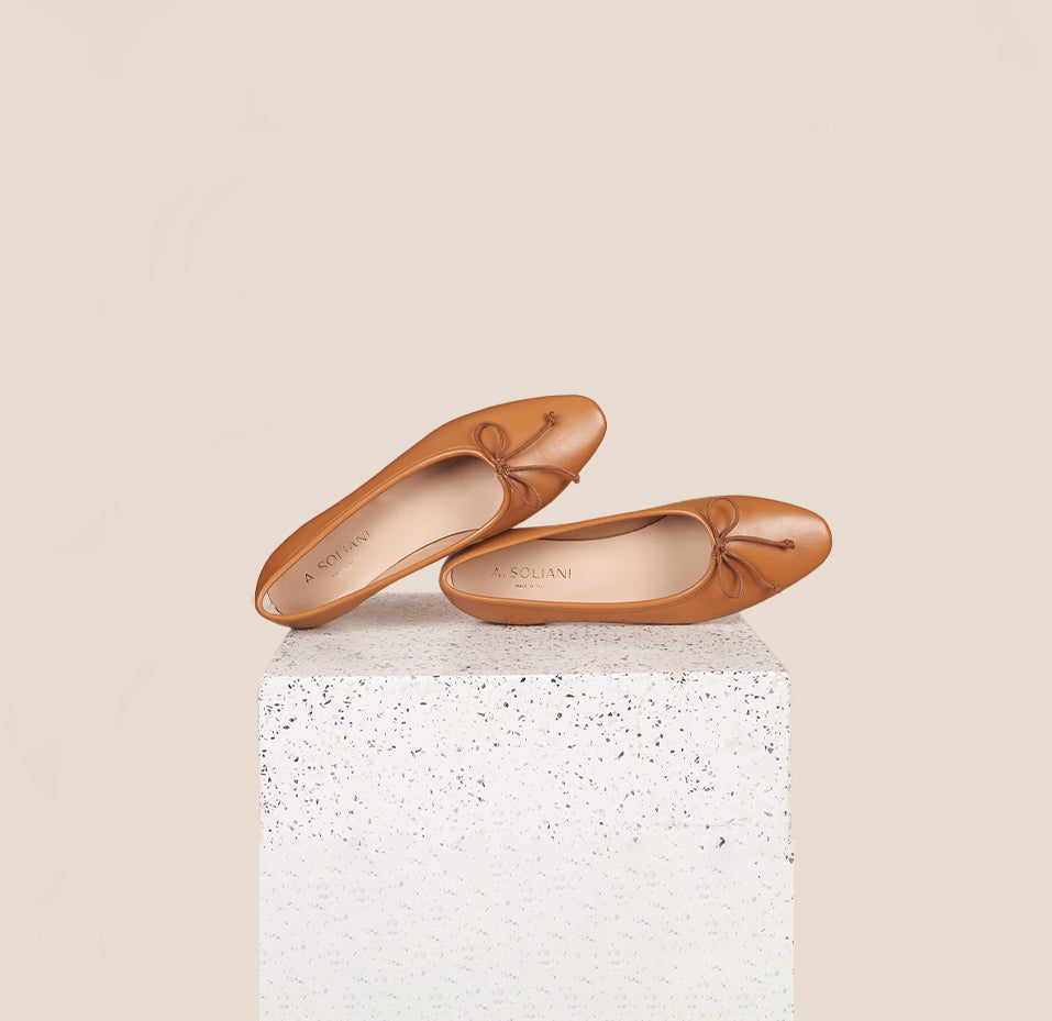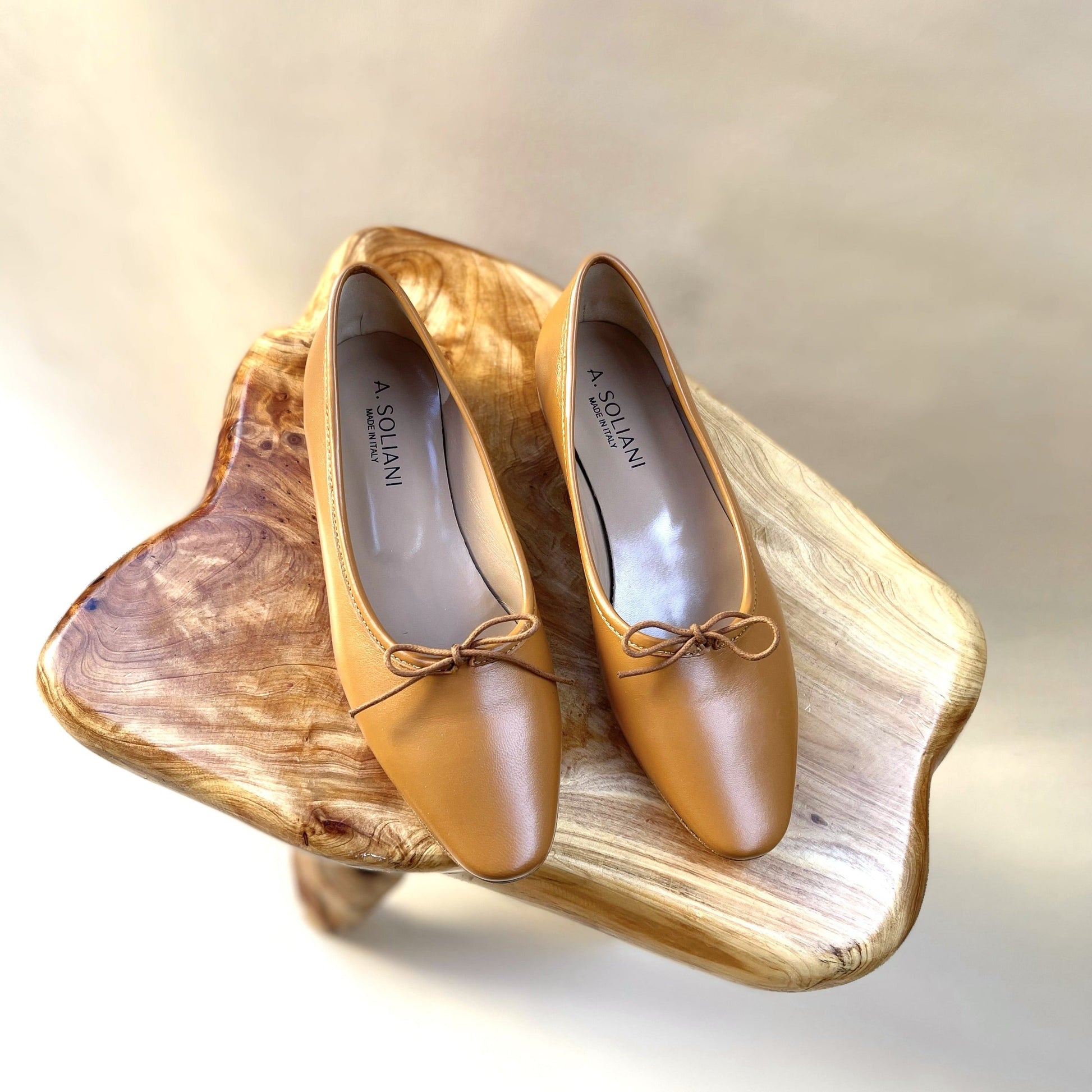 The Como, our classic ballerina flat, has a longer toe box and a slim shape that elongate the legs to perfection. The low stacked heel is comfortable for everyday wear, and a cotton bow adds a pretty, feminine touch.