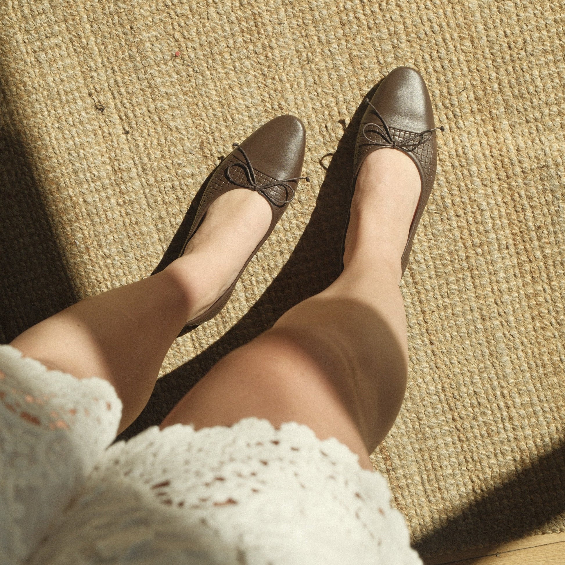 The Como, our classic ballerina flat, has a longer toe box and a slim shape that elongates the legs to perfection. The low-stacked heel is comfortable for everyday wear, and a cotton bow adds a pretty, feminine touch.