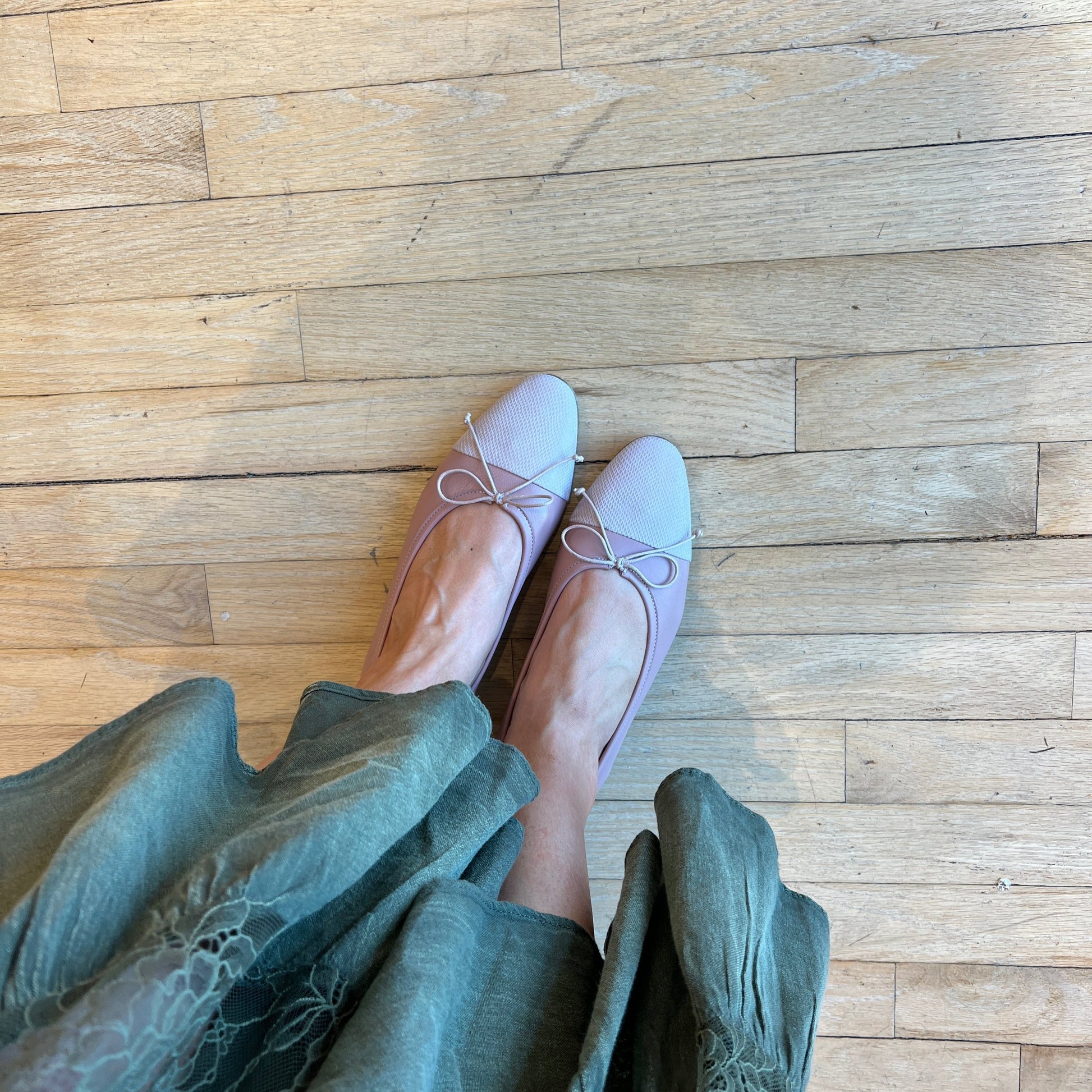 The Como, our new ballerina flat, has a longer toe box and a slim shape that elongate the legs to perfection. The low stacked heel is comfortable for everyday wear, and a cotton bow adds a pretty, feminine touch.