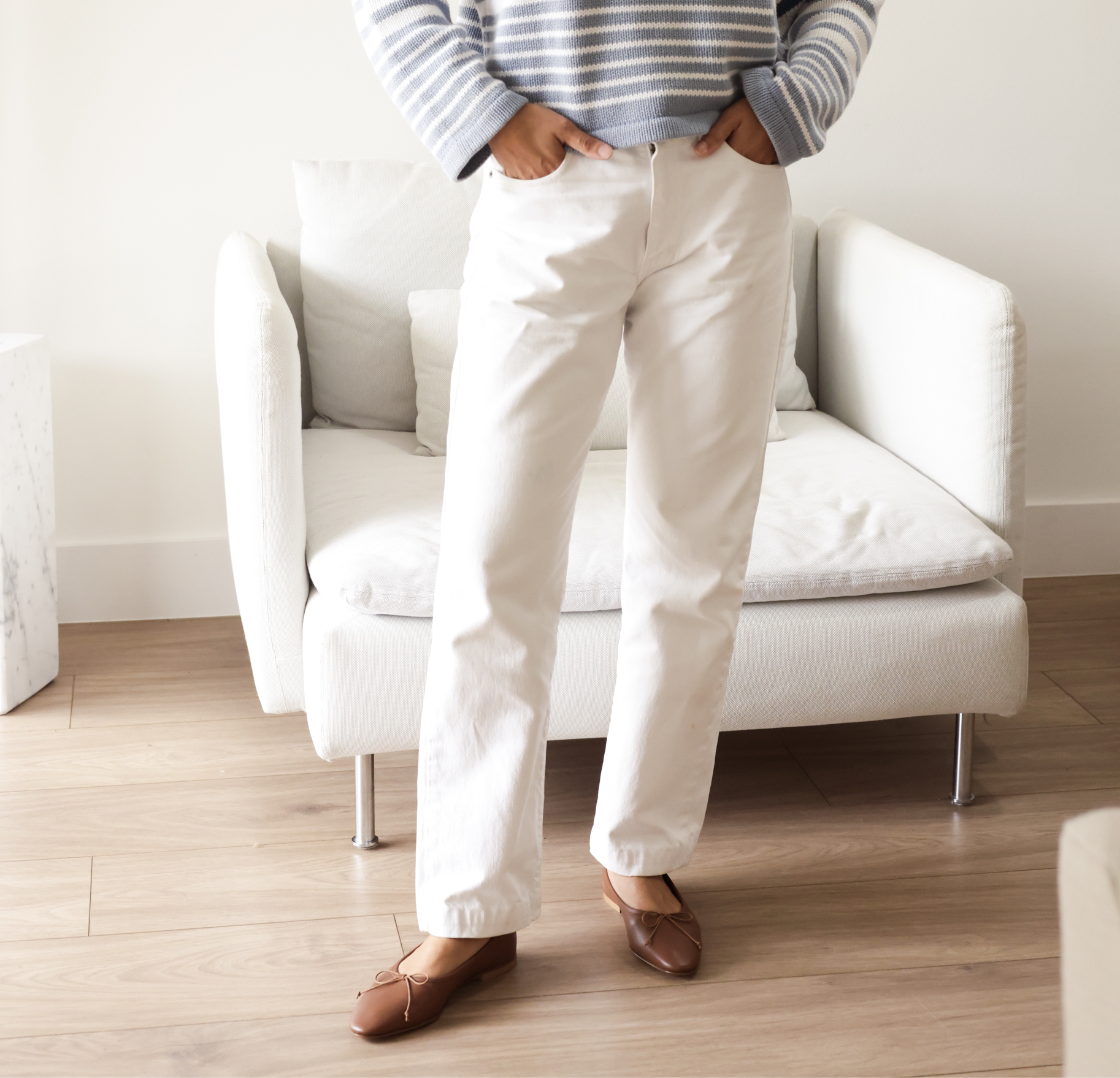 The Como, our new ballerina flat, has a longer toe box and a slim shape that elongate the legs to perfection. The low stacked heel is comfortable for everyday wear, and a cotton bow adds a pretty, feminine touch.