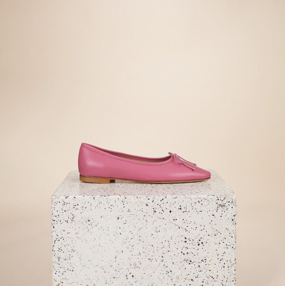 The Como, our new ballerina flat, has a longer toe box and a slim shape that elongate the legs to perfection. The low stacked heel is comfortable for everyday wear, and a cotton bow adds a pretty, feminine touch.