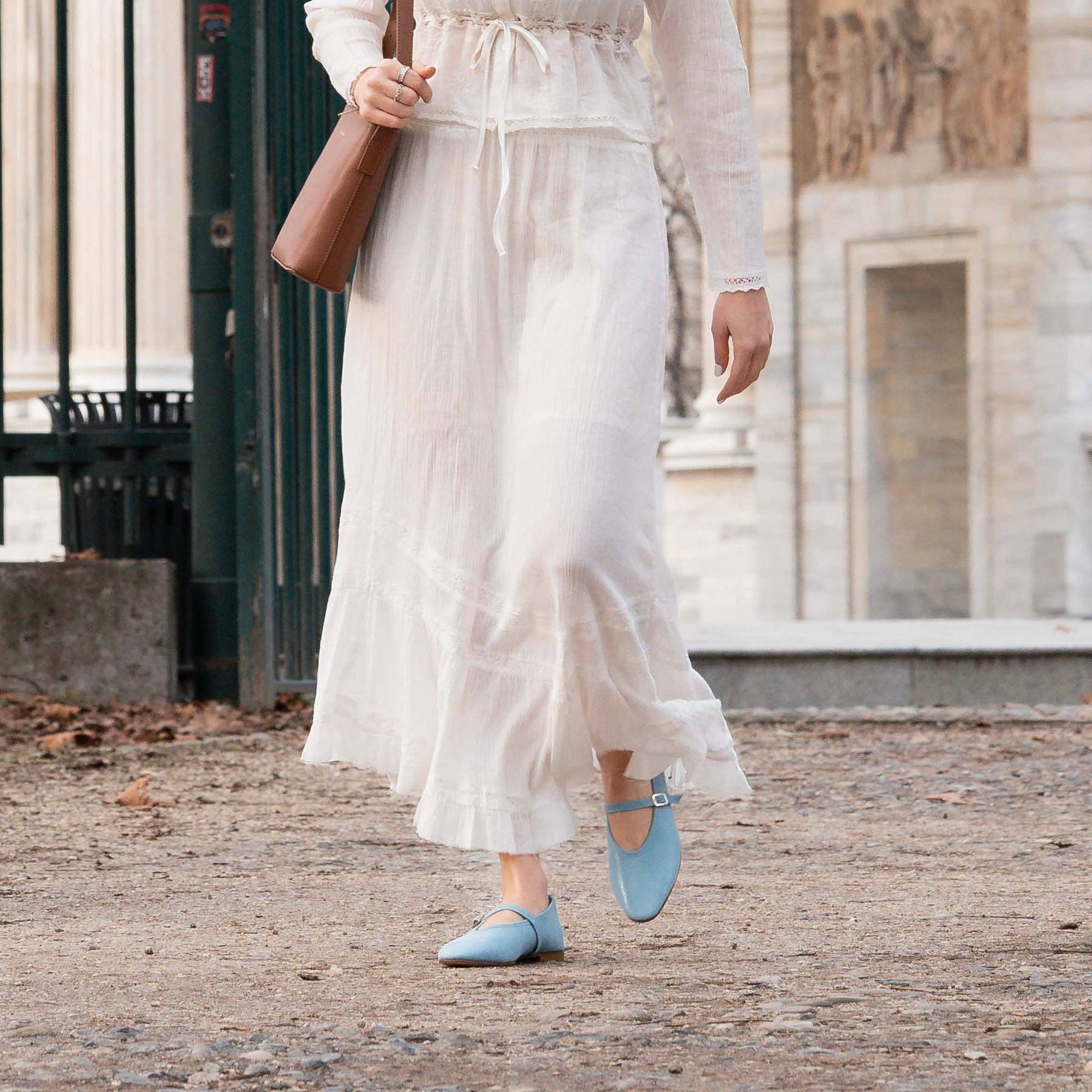 A modern interpretation of the classic ballerina, Cori is designed with an elongated toe box and a sleek silhouette that naturally flatters the legs. The delicate Mary Jane buckle adds a refined, feminine touch, while the low stacked heel ensures comfort for all-day wear. Handcrafted in Italy from the finest Italian nappa leather, Cori embodies effortless elegance with a timeless appeal.