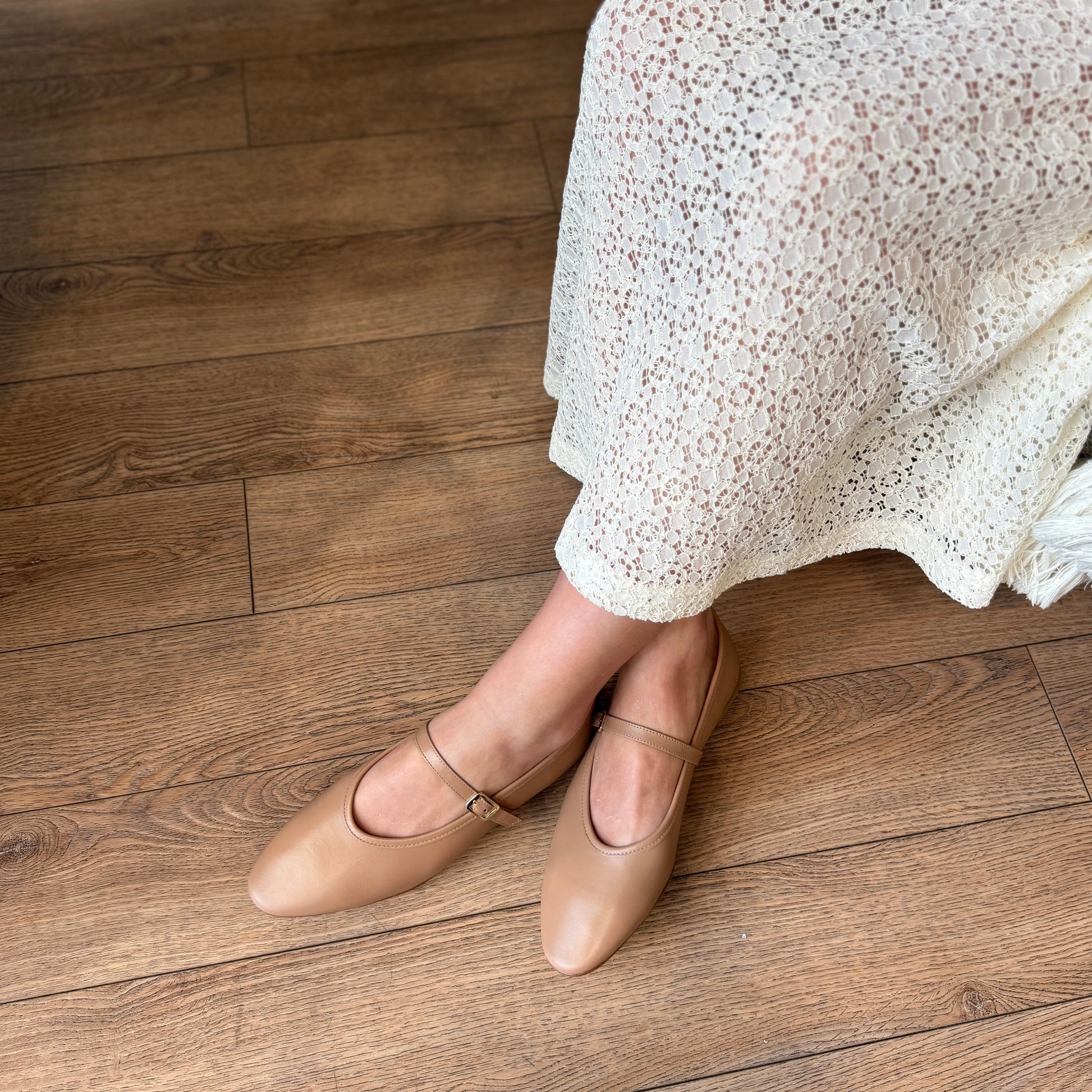 A modern interpretation of the classic ballerina, Cori is designed with an elongated toe box and a sleek silhouette that naturally flatters the legs. The delicate Mary Jane buckle adds a refined, feminine touch, while the low stacked heel ensures comfort for all-day wear. Handcrafted in Italy from the finest Italian nappa leather, Cori embodies effortless elegance with a timeless appeal.
