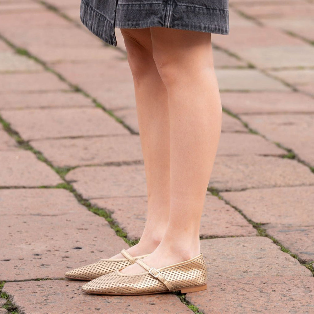 A modern interpretation of the classic ballerina, Cori is designed with an elongated toe box and a sleek silhouette that naturally flatters the legs. The delicate Mary Jane buckle adds a refined, feminine touch, while the low stacked heel ensures comfort for all-day wear. Handcrafted in Italy from the finest Italian nappa leather, Cori embodies effortless elegance with a timeless appeal.