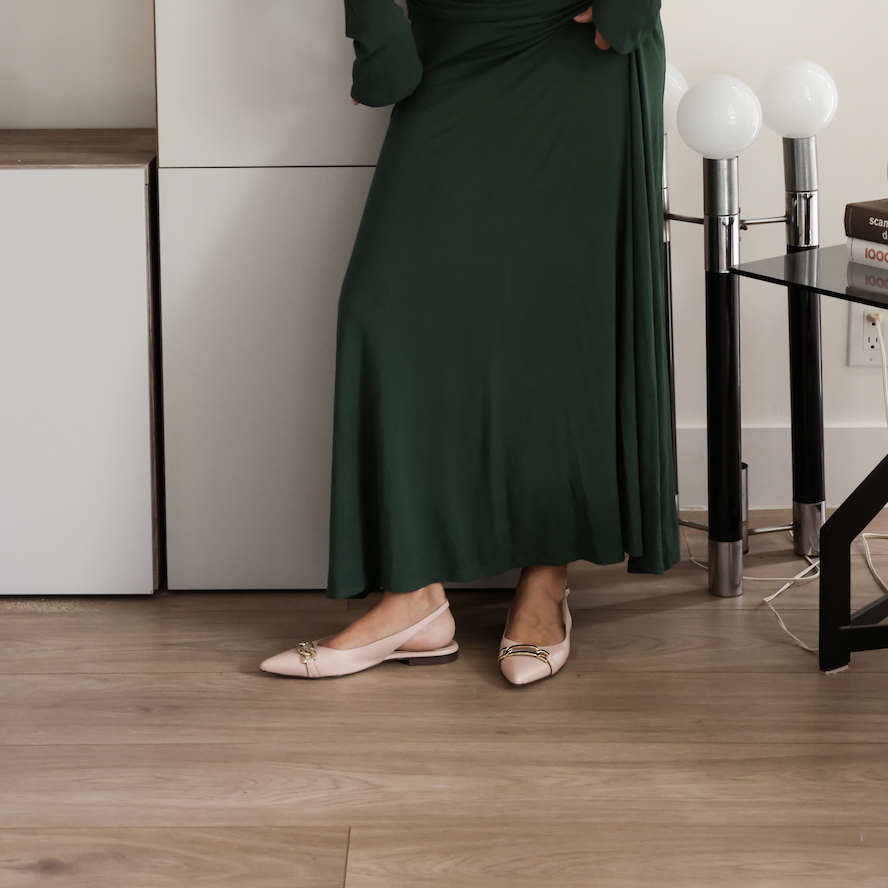 Introducing our new Emilia, a perfect blend of style and sophistication. The Emilia features a pointed toe, adding a touch of elegance to any ensemble. The front is adorned with a delicate chain, adding a subtle yet eye-catching detail.