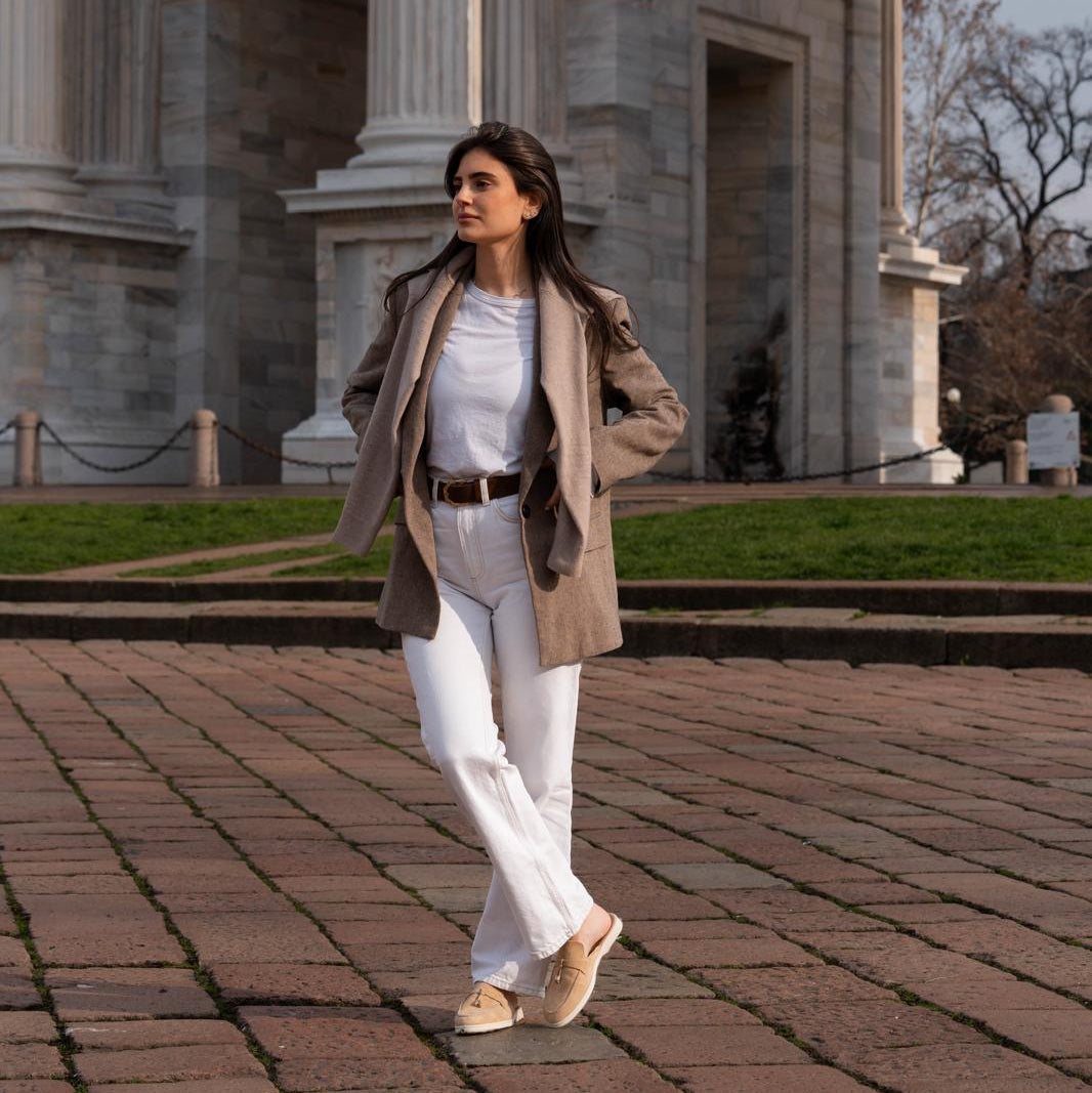 Expert craftsmen in Italy have carefully crafted the 'Lisa' to be a lightweight and comfortable shoe with a casual-chic design that is ideal for all year round. The shoe boasts a high-quality and flexible rubber sole, an enveloping upper for added comfort, and an understated elegance that sets it apart. Additionally, the shoe is made with blue suede leather, features hand-stitched details on the sides of the vamp, and has a reinforced heel.