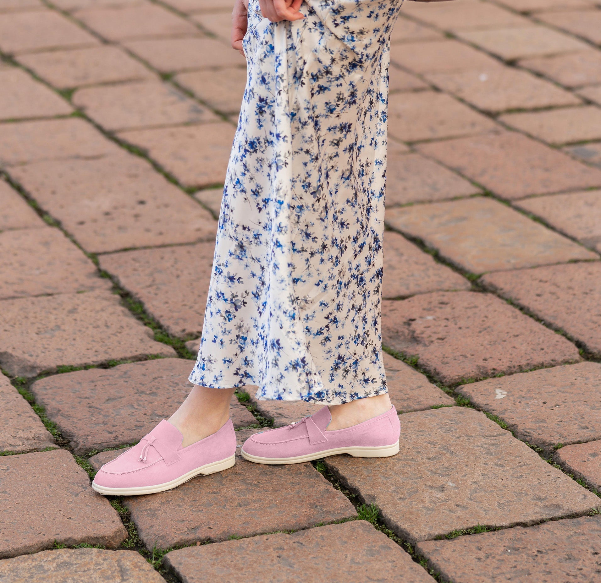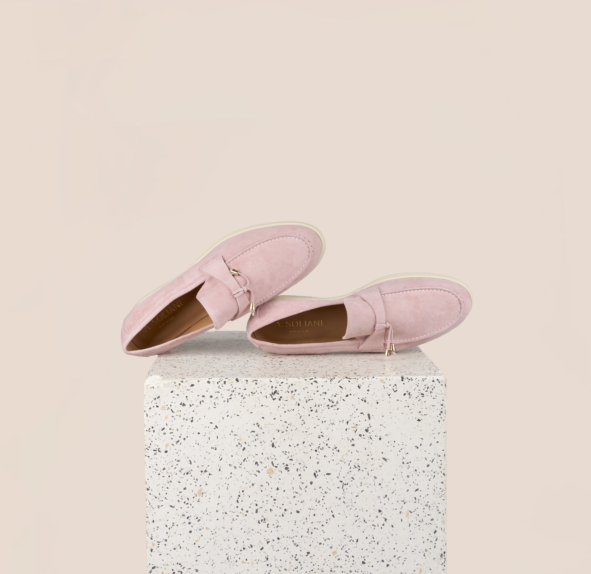 Expert craftsmen in Italy have carefully crafted the 'Lisa' loafer to be a lightweight and comfortable shoe with a casual-chic design that is ideal for all year round. The shoe boasts a high-quality and flexible rubber sole, an enveloping upper for added comfort, and an understated elegance that sets it apart. Additionally, the shoe is made with olive suede leather, features hand-stitched details on the sides of the vamp, and has a reinforced heel.