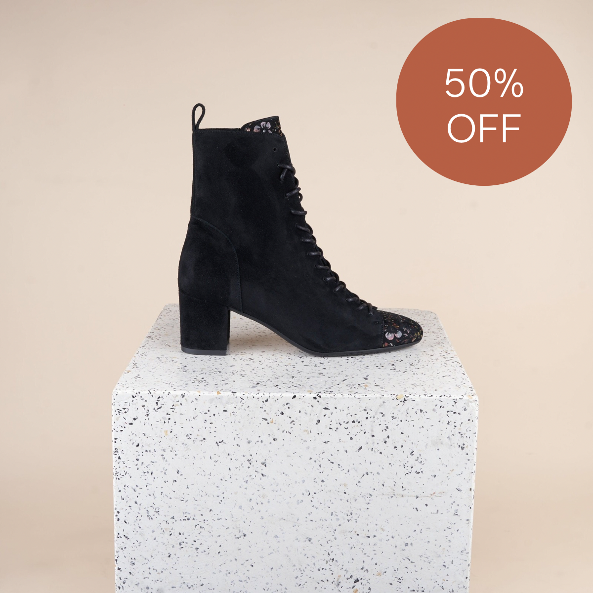 Venezia - Black Suede/Floral SAMPLE SALE - FINAL SALE